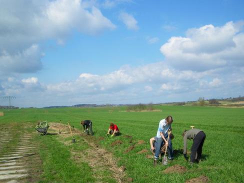 Die Bäume sind ca. 1 m groß und der Boden lehmig-schwer, darum brauchen wir ein paar mehr Helfer als sonst. Um uns die Arme nicht zu lang werden zu lassen, steht ein benzingetriebenes Erdbohrgerät zur Verfügung. Wer zur Pflanzaktion kommt, kann sich auf eine Party mit Musik, Feuer und Futtern am Abend freuen. Gepflanzt wird aber vorraussichtlich nur am Samstag (ab 9:00), je nach Fortschritt. Unterkunft für Übernachtungsgäste im Haus (Renovierungsstau), Bauwagen oder in selbstmitgebrachten Zelten.