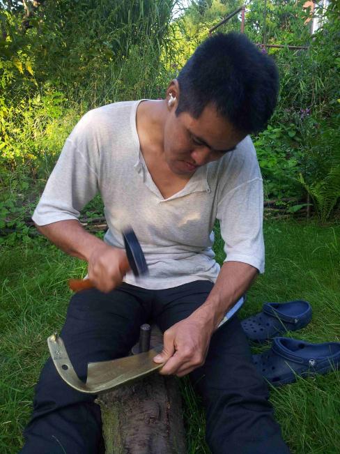 Am Freitag Abend zuvor wurde noch kräftig gedengelt. Wer oder was dengeln ist, wussten wir auch vorher nicht. Martin war im Urlaub, hat uns aber seinen Garten und dieses Video zur Anleitung geschickt.