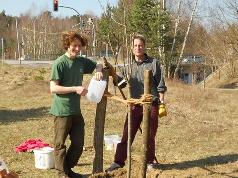 Am 24. März waren wir etwa mit 15 Leuten im Einsatz auf der Streuobstwiese: Bäume schneiden, Gießränder erneuern, Schönheitsarbeiten und gießen.